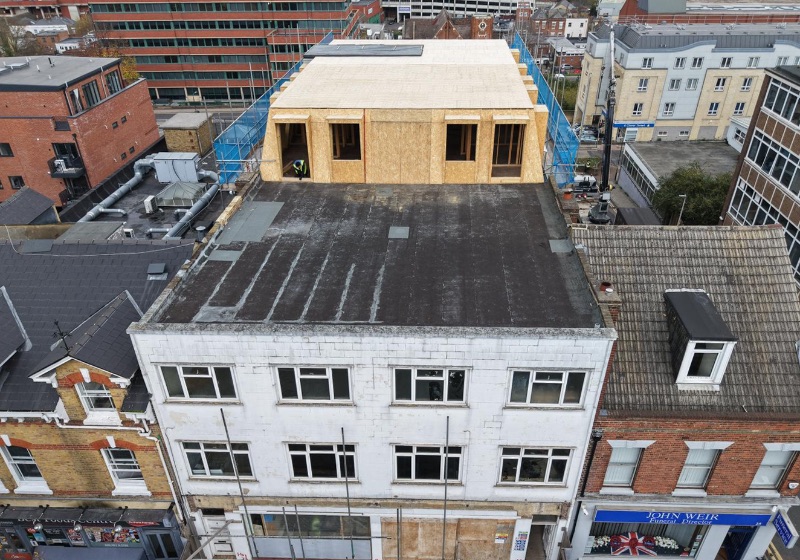 The former bed shop rises into the sky en route to creating 34 modern brand new apartments.